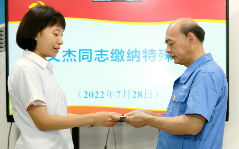 得到愛(ài),分享愛(ài)。楊義杰同志的無(wú)私奉獻(xiàn)精神受到了集團(tuán)公司黨委的高度關(guān)注,也得到了上級(jí)黨委授予的各項(xiàng)榮譽(yù)。每年春節(jié)前,公司黨委均要慰問(wèn)他這位省勞模,為他送去慰問(wèn)金。他在感恩之時(shí),也牢記自己的黨員身份,多次向黨組織繳納特殊黨費(fèi),表達(dá)對(duì)黨組織的感激之情。2014年6月17日,他繳納特殊黨費(fèi)1000元,要求不作宣傳,不要讓同事們知道。2017年10月,他又向黨組織繳納特殊黨費(fèi)1000元,以迎接黨的十九大隆重召開(kāi)。去年,為迎接黨的二十大勝利召開(kāi),他再次交納1000元大額黨費(fèi),以表達(dá)他對(duì)黨的無(wú)限忠誠(chéng)和熱愛(ài)。