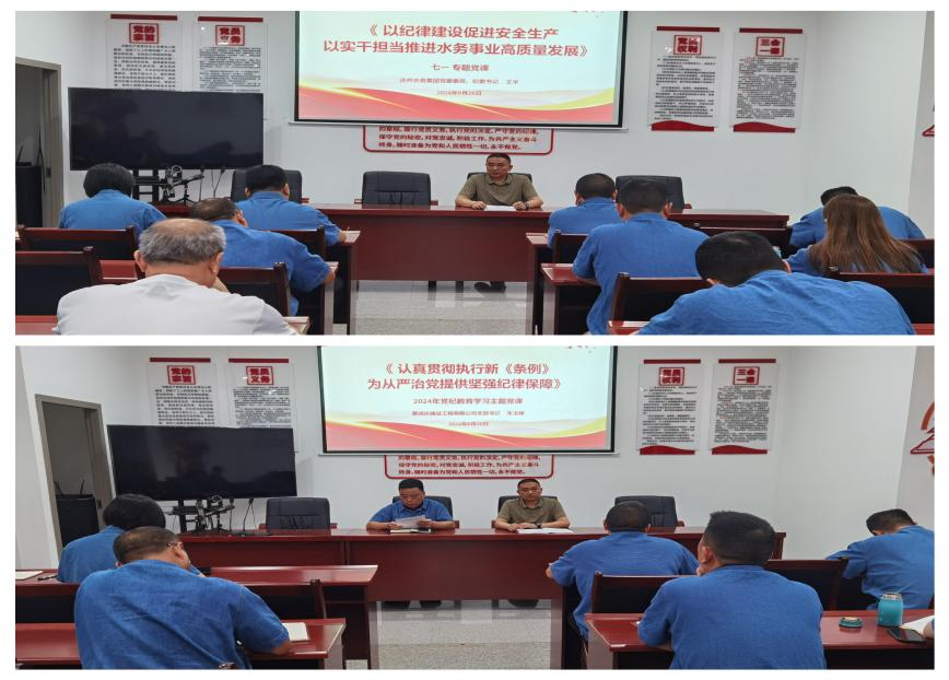 強(qiáng)黨性,講好一黨專題黨課。 一堂生動的黨課,是一場深刻的理論教育、一次初心的凈化洗禮。6月26日,支部聯(lián)系領(lǐng)導(dǎo)集團(tuán)黨委委員、紀(jì)委書記王宇為支部全體黨員上了一堂主題為“以紀(jì)律建設(shè)促進(jìn)安全生產(chǎn) 以實(shí)干擔(dān)當(dāng)推進(jìn)水務(wù)事業(yè)高質(zhì)量發(fā)展”的黨課,并對全體黨員同志如何嚴(yán)格遵守黨規(guī)黨紀(jì)提出更高的要求。支部書記朱玉峰詳細(xì)解析了《中國共產(chǎn)黨紀(jì)律處分條例》中的“六大紀(jì)律”的相關(guān)內(nèi)容,讓全體黨員對“六大紀(jì)律”有了更清醒的認(rèn)識,黨性素養(yǎng)被進(jìn)一步錘煉。